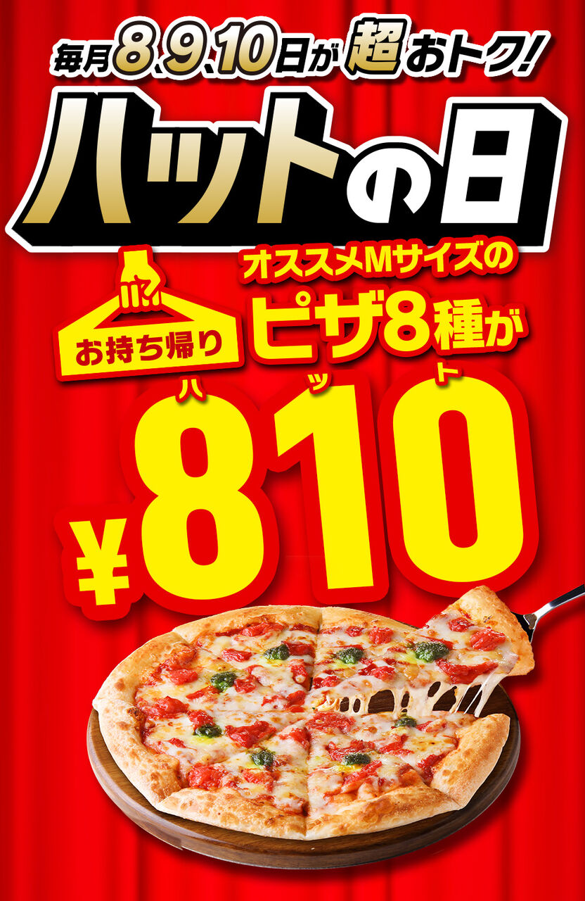 @tobibashiピザハット恒例の特売日「ハットの日」が2024年からリニューアル!毎月8・9・10日は対象ピザがすべて810円 | ピザハット prtimes.jp/main/html/rd/p…
